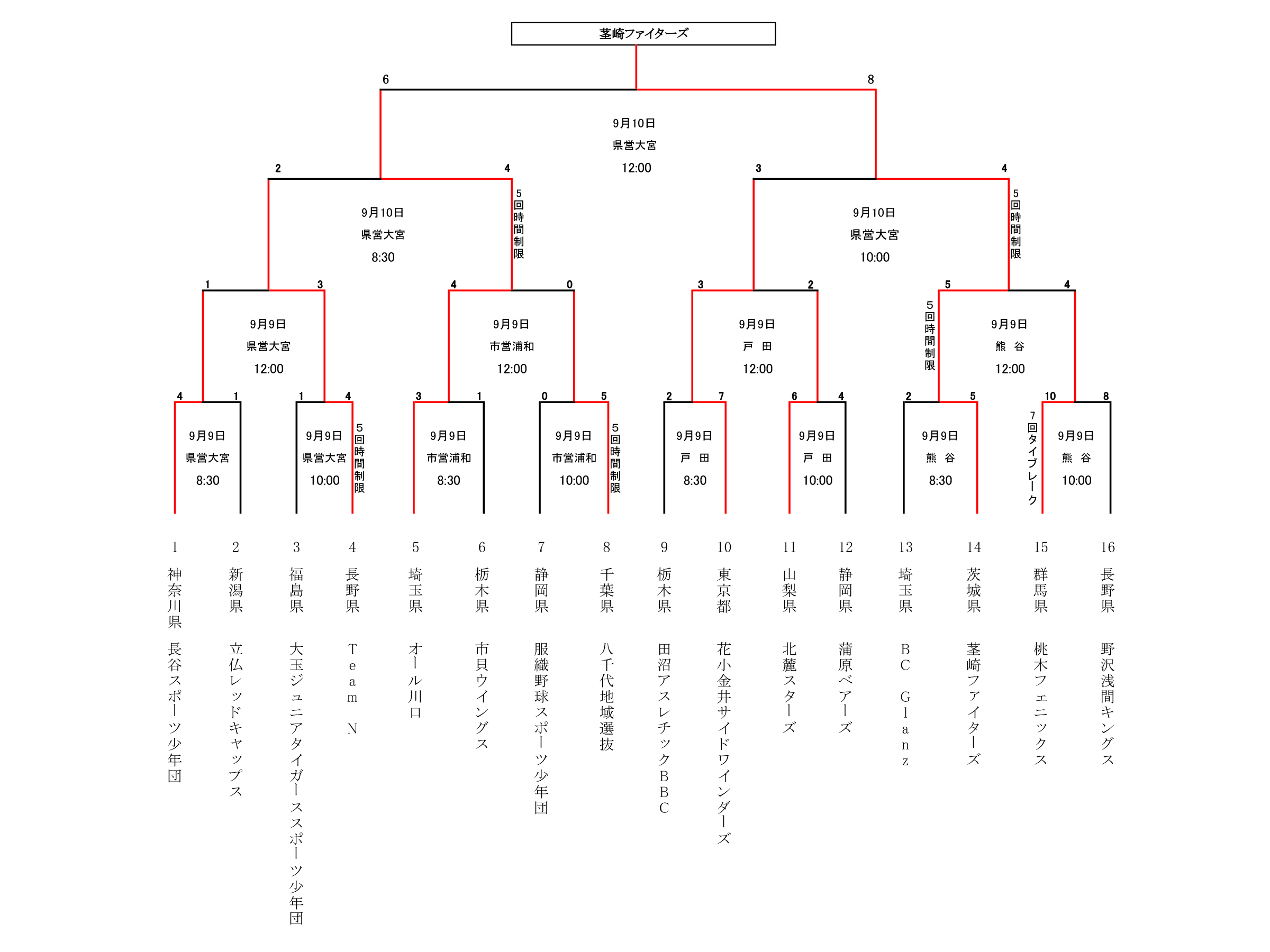 (県営大宮)埼玉県営大宮公園野球場・(市営浦和)さいたま市営浦和球場・(戸田)戸田市北部公園野球場・(熊谷)熊谷さくら運動公園野球場