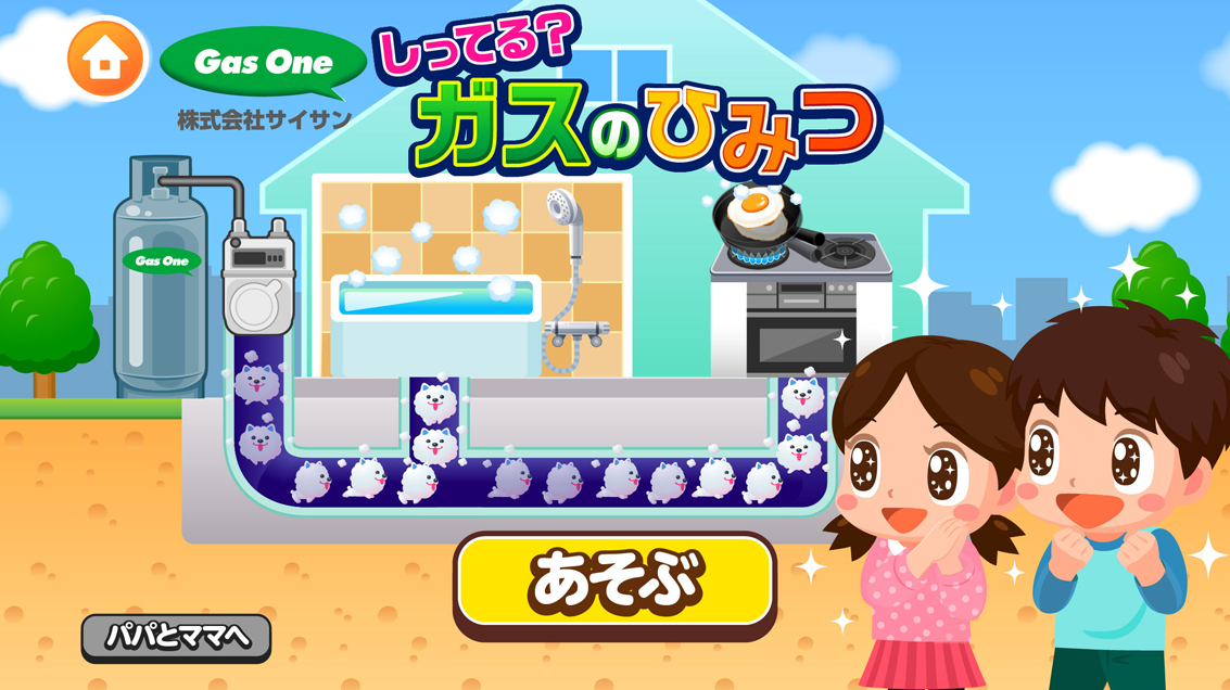 砂漠の深いところを掘り進めて集めたガスを専用船で日本に運んだら、ガスワンマークのボンベに積めてみんなに届けにいく「ガスワンタウンをつくろう」に、「ガスはおうちでどんなふうに使われているのかな?」のストーリーが加わって、「しってる?ガスのひみつ」に生まれ変わりました。