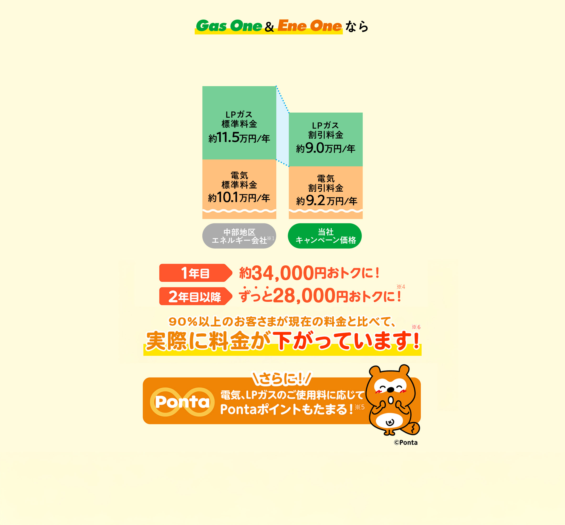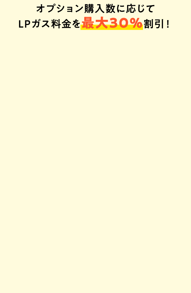 ※2:電気料金とセットで契約いただく事が前提となります。LPガス基本料金は固定とし、従量料金を割引致します。