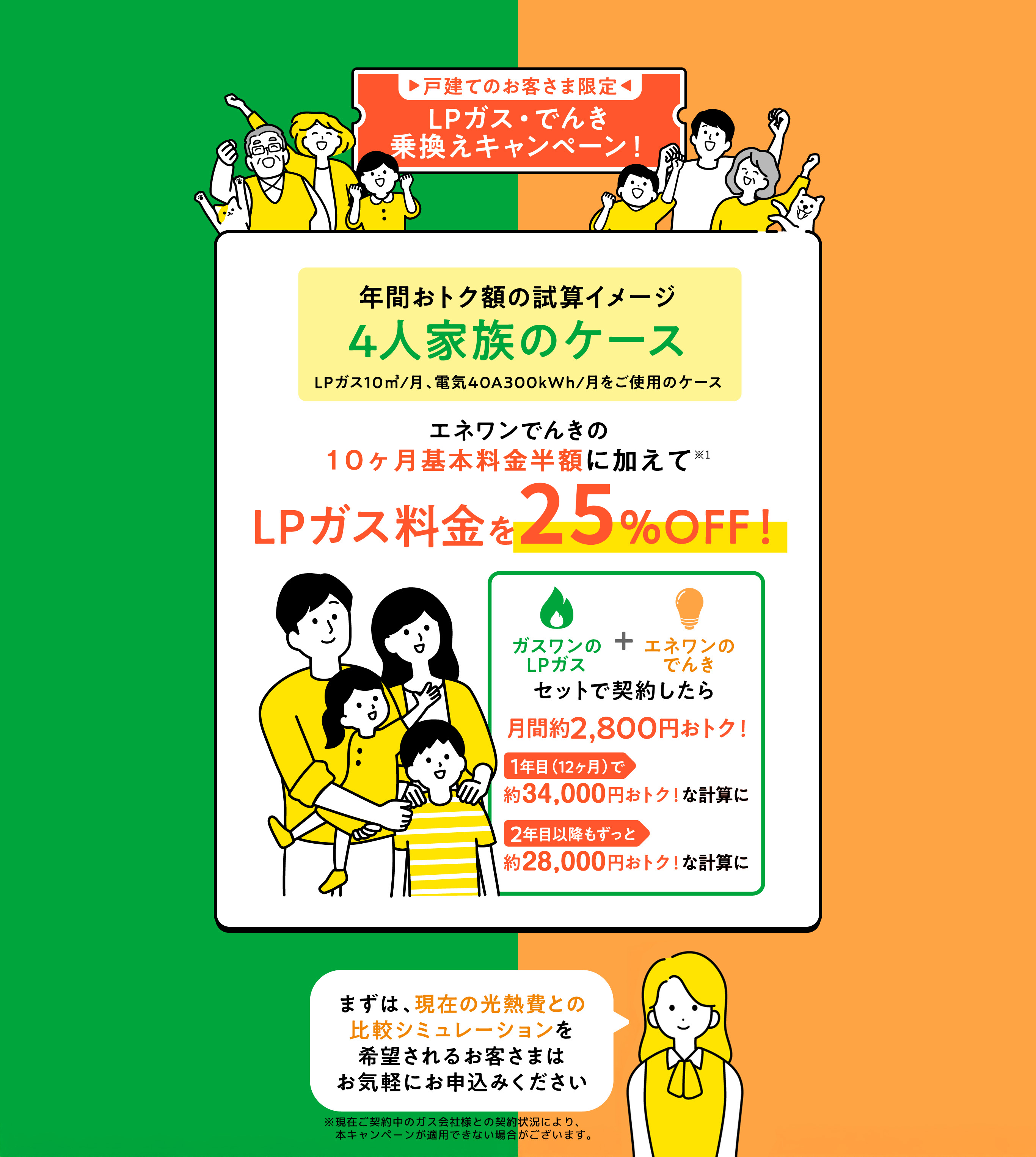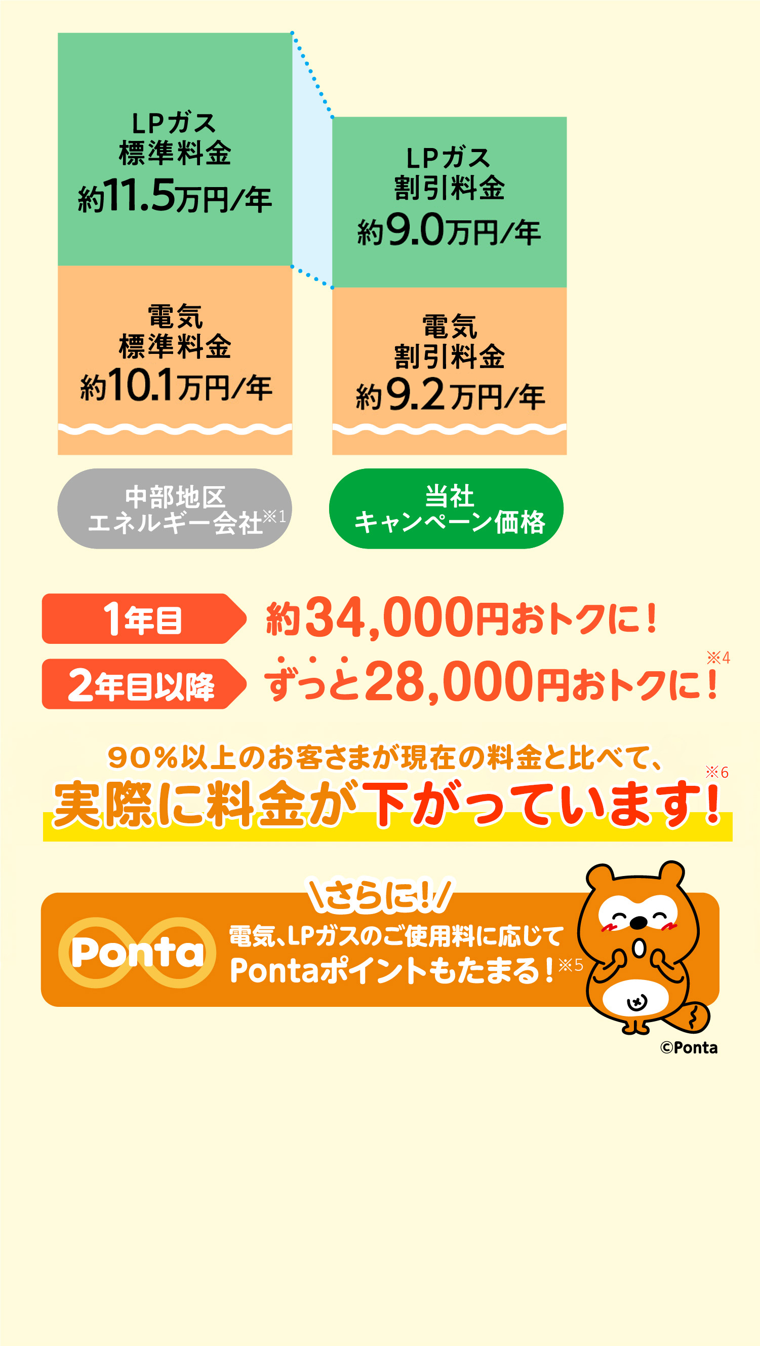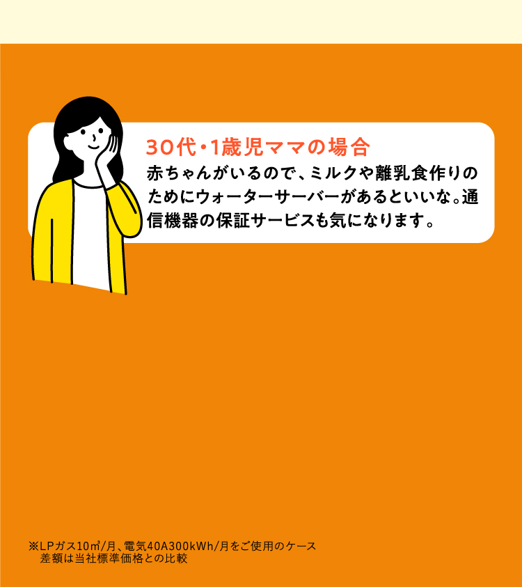 - 割引価格例:LPガス10㎥、電気40A300kWh